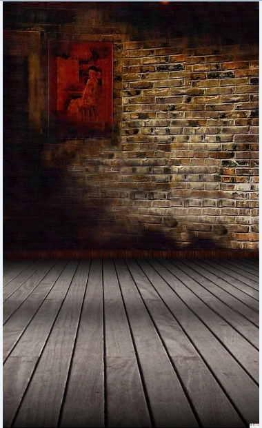 8x15ft Indoor Ziegel Wand Bilderrahmen Grau Holzboden Zimmer