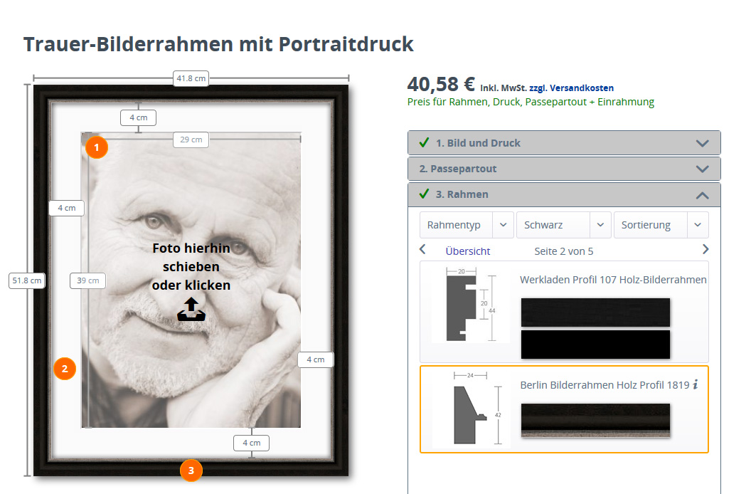 Trauerrahmen Für Beerdigunge Und Beisetzung Incl Portraitdruck